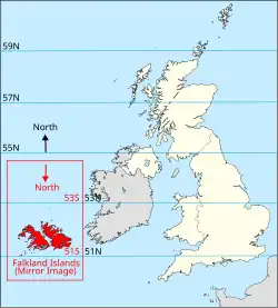 - ^ "(Falkland Island) Location". The Falkland Islands Government. 2009. Archived from the original on 5 March 2010. Retrieved 5 March 2010.