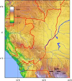 - Border countries: Cabinda (Angola) (231 kilometres or 144 miles), the Democratic Republic of the Congo (1,229 kilometres or 764 miles), Central African Republic (487 kilometres or 303 miles), Cameroon (494 kilometres or 307 miles), Gabon (2,567 kilometres or 1,595 miles).