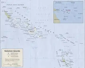 This is a list of the extreme points of Solomon Islands, the points that are farther north, south, east or west than any other location.