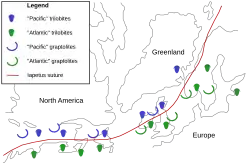 {{cite web}}: CS1 maint: multiple names: authors list (link) - ^ Differences in fossil faunas astride the red line (the Iapetus suture) show that an ocean was between the two sides before the continents were joined in the supercontinent Pangaea. Figure based on Windley (1996) and Ziegler (1990)