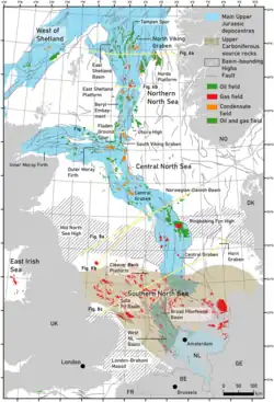 - ^ a b c d e f g h i j k l m n o p Glennie, K. W.; J.R. Underhill (1998). Origin, Development and Evolution of Structural Styles 2.1 Outline of the structural framework of the North Sea. Wiley. ISBN 9780632038459. Retrieved November 19, 2008.