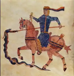 The image seems out of place, given that the snake is typically a symbol of Satan in Christian iconography. It can, however, also represent wisdom,[Notes 5] forcing the viewer to ask whether the mounted figure is a Mudejar, destroying the embodiment of Christian wisdom, or a Mozarab, destroying evil: which points to a rather complex and ambivalent view of Mozarabs at the time.[7] To further complicate interpretation, the idea of the Christian as a "cunning serpent" was prominent in the Cordovan martyrs’ movement.[Notes 6][8]