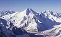 Gilgit-Baltistan covers an area of over 72,496 km2 (27,911 sq mi)[23] and is highly mountainous. Its capital and largest city is Gilgit, while Skardu is the second largest city. It had a population of 1.492 million people according to the 2017 national census (estimated to be 1.7 million in 2022).[23] The economy is dominated by agriculture and the tourism industry.[24] The region is home to five of the 14 eight-thousanders, including K2, and has more than fifty mountain peaks above 7,000 metres (23,000 ft). Three of the world's longest glaciers outside of Earth's polar regions are found in Gilgit-Baltistan. The main tourism activities are trekking and mountaineering, and this industry has been growing in importance throughout the region.