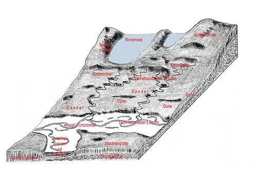 - a glacial meltwater valley, the Urstromtal, through which meltwaters from the glacier flowed away.