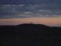 Bronze Age herder burials have been found in the Gobi desert, as well as Karasuk bronze knives, and Mongolian deer stones.[19] Between 5000 cal BP and 4500 cal BP there was a period of desertification.[19][20] Due to the increasing aridity between 3500 cal BP and 3000 cal BP there was a decline in human habitation in the Gobi desert.[19] Prehistoric petroglyphs have been found in Southern Mongolia in 1997.[21]