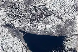 The Golden Horseshoe (French: Fer à cheval doré) is a secondary region of Southern Ontario, Canada, which lies at the western end of Lake Ontario, with outer boundaries stretching south to Lake Erie and north to Lake Scugog, Lake Simcoe and Georgian Bay of Lake Huron. The region is the most densely populated and industrialized in Canada. Based on the 2021 census, with a population of 7,759,635 people in its core and 9,765,188 in its greater area, the Golden Horseshoe accounts for over 20 percent of the population of Canada and more than 54 percent of Ontario's population.[3] The population of the greater area is estimated to have exceeded 11,000,000 people in 2024.[1] The Golden Horseshoe is part of the Quebec City–Windsor Corridor, itself part of the Great Lakes megalopolis.