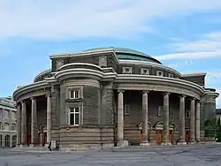 The Golden Horseshoe is home to several universities, including the University of Toronto and McMaster University in Hamilton, which are ranked 1st and 4th in Canada, respectively, by the Academic Ranking of World Universities.[53] Other universities in the region include Brock University in St. Catharines, Trent University in Peterborough, York University in northern Toronto near Vaughan, OCAD University in downtown Toronto, Ontario Tech University in Oshawa, Toronto Metropolitan University (formerly Ryerson University), the University of Guelph, the University of Waterloo, Wilfrid Laurier University in Waterloo, and the Université de l'Ontario français in downtown Toronto. The Golden Horseshoe is also home to many colleges.[54]