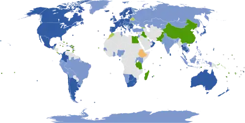 | Oceania | Australia, New Zealand, Guam, Northern Mariana Islands, American Samoa, Pitcairn Islands, Christmas Island, Cocos (Keeling) Islands | Vanuatu, United States Minor Outlying Islands |