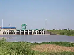Dam on the Río Negro, near Resistencia, Chaco (Argentina); the torrential rains that follow the region's long dry season make flood-control works critical.