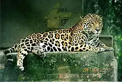 A jaguar at rest in the Formosa Province Wildlife Rehabilitation Center