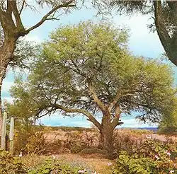 An Algarrobo, white carob tree, in the Gran Chaco area of Argentina. This prized shade tree is common to the area.