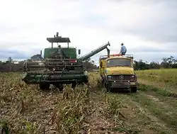 Deforestation in the Argentinian part of the Chaco amounted to an average of 100,000 hectares (250,000 acres) per year between 2001 and 2007.[22] According to Fundación Avina, a local NGO, on average, 1,130 ha (2,800 acres) are cleared per day. The soy plantations not only eliminate the forest, but also other types of agriculture. Indigenous communities are losing their land to agribusinesses. Since 2007, a law is supposed to regulate and control the cutting of timber in the Gran Chaco, but illegal logging continues.[23]