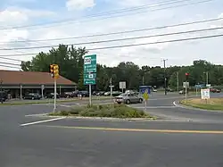 According to the United States Census Bureau, the town has a total area of 28.1 square miles (72.7 km2), of which 27.8 square miles (72.1 km2) are land and 0.27 square miles (0.7 km2), or 0.92%, is water.[14] Granby is bordered by South Hadley to the west, Amherst to the north, Belchertown to the east, and Ludlow and Chicopee to the south. Two highways pass through the town: U.S. Route 202 runs eastward though town from South Hadley to Belchertown on East State Street and West State Street, while Route 116 runs northeastward from South Hadley to Amherst along Amherst Road. Granby is 13 miles (21 km) north of Springfield, the largest city in western Massachusetts.