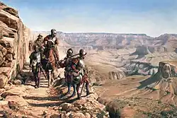 La conquista del Colorado (2017), by Augusto Ferrer-Dalmau, depicts Francisco Vázquez de Coronado's 1540–1542 expedition. García López de Cárdenas can be seen overlooking the Grand Canyon.