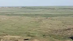 Grasslands National Park represents the Prairie Grasslands natural region, protecting one of the nation's few remaining areas of undisturbed dry mixed-grass/shortgrass prairie grassland.[2] The park is located in the World Wildlife Fund-defined Northern short grasslands ecoregion, which spans much of southern Saskatchewan, southern Alberta, and the northern Great Plains states in the US. The unique landscape and harsh, semi-arid climate provide niches for several adapted plants and animals. The park and surrounding area house the country's only black-tailed prairie dog colonies. Fauna found in the park include bison, pronghorns, greater sage-grouses, ring-necked pheasants, burrowing owls, coyotes, ferruginous hawks, swift foxes, prairie rattlesnakes, black-footed ferrets, eastern yellow-bellied racers, and greater short-horned lizards.[3][4] Flora includes blue grama grass, needlegrass, plains cottonwood and silver sagebrush.[5]
