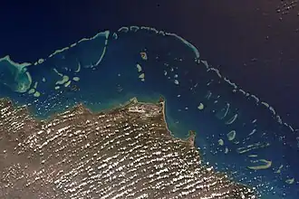 ![]() Image of part of the Great Barrier Reef adjacent to Queensland, taken from the International Space Station | |