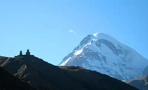 - Kazbek (Mkinvartsveri), 5,047 m (16,558 ft), 42°41′51″N 44°31′08″E / 42.69750°N 44.51889°E