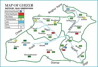 - ^ On the map of Gilgit-Baltistan, the Ishkoman Tehsil is wrongly shown as part of the Gupis-Yasin District.