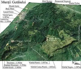 The Gutin Mountains (Romanian: Munții Gutâi; Hungarian: Gutin-hegység; Ukrainian: Гутинський масив) are a mountain range within the Vihorlat-Gutin Area of the Inner Eastern Carpathians. They are centered in Maramureș County in Romania, bordering Satu Mare County, and also stretching further towards northwest as the Oaș Mountains, and reaching the border with Zakarpattia Oblast in Ukraine.[1]