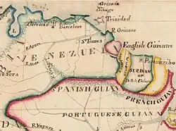 Venezuela claimed more than half of the territory of the British colony of Guyana at the time of the Latin American wars of independence. Guyana argues that the boundary between the nations was clarified in the Arbitral Award of 1899 signed by Guyana, whereas Venezuela called the award an "Anglo-Russian conspiracy".[2] In 1962, Venezuela declared that it would no longer abide by the arbitration decision, which ceded mineral-rich territory in the Orinoco basin to Guyana. The disputed area is called "Guayana Esequiba" by Venezuela. A border commission was set up in 1966 with representatives from Guyana, Venezuela and the United Kingdom, but failed to reach agreement. Venezuela vetoed Guyana's bid to become a member of the Organization of American States (OAS) in 1967. In 1969, Venezuela backed an abortive uprising in the disputed area.