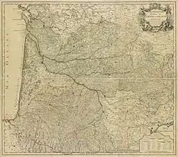 Guyenne then formed a government (gouvernement général) which from the 17th century onwards was united with Gascony.[2] In 1779, Louis XVI convened the provincial assemblies of Guyenne and considered expanding the assembly to other provinces, but abandoned this idea after experiencing the opposition of the privileged classes in Guyenne.[3] The government of Guyenne and Gascony (Guienne et Gascogne), with its capital at Bordeaux, lasted until the end of the Ancien Régime in 1792. Under the French Revolution, the departments formed from Guyenne proper were those of Gironde, Lot-et-Garonne, Dordogne, Lot, Aveyron and the chief part of Tarn-et-Garonne.[2]