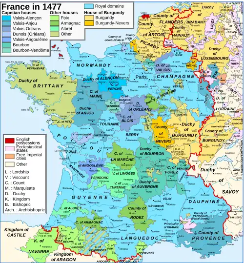 France in 1477, when Guyenne (southwest) was a part of the royal domain