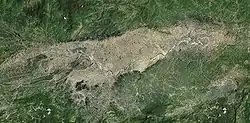 Hanzhong Basin, located in the southwestern Shaanxi, is the largest faulted basin in the upper reaches of the Han River, with the Qinling Mountains to the north and the Daba Mountains to the south.[8] The basin is about 116 km long from east to west and 5~25 km wide from north to south, with a total area of about 2700 km².[9]