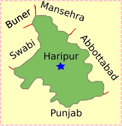 ![]() Haripur District (red) in Khyber Pakhtunkhwa | |