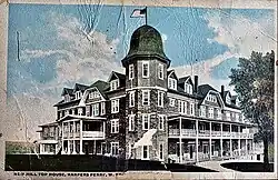 The Hill Top House Hotel, which had opened in 1888 to accommodate African Americans as the sole hotel in Harpers Ferry that would accept them as guests, burned in 1911. It was then rebuilt on a larger scale, but that building also burned in 1919. It was rebuilt a second time on a slightly smaller scale but closed in 2008. As of 2021, developers plan to demolish it and build a new 120-room hotel on the site.[81] Controversies about the impact such a proposed venue would have on the town have delayed its development.