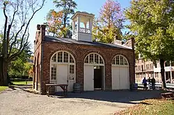 On August 15, 1906, Black author and scholar W. E. B. Du Bois led the first meeting on American soil of the new Niagara Movement. Named after the site of its initial meeting in Fort Erie, Ontario, Canada on the Niagara River,[65] the movement met on the campus of Storer College, a primarily Black college that operated until 1955. (After it closed, the campus became part of Harpers Ferry National Historical Park.) The three-day gathering, which was held to work for civil rights for African Americans, was later described by DuBois as "one of the greatest meetings that American Negroes ever held".[66] Attendees walked from Storer College to the farm of the Murphy family, the location at the time of John Brown's historic "fort," the armory's firehouse. As a result, the fort was soon moved to the Storer campus, where it became the college's central icon. After the college closed in 1955, the National Park Service moved it back to as close as possible to its original location.[67]