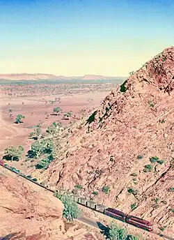 The Heavitree Gap, or Ntaripe in the Arrernte language,[1] is a water gap in the Northern Territory of Australia in the MacDonnell Ranges. It is the southern entrance to the city of Alice Springs and in addition to the Todd River it carries the main road and rail access to the south.