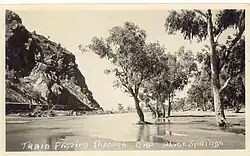 The Gap is an important sacred site for the Arrernte people[1][2][3] and its use as a thoroughfare was avoided by women prior to the construction of the road and later Central Australia Railway.
