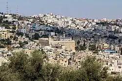 View of Hebron with the Cave of the Patriarchs, Palestine Polytechnic University, Old City of Hebron, Tomb of Jesse and Ruth, Sheikh Ali al-Bakka Mosque and Downtown Hebron