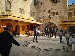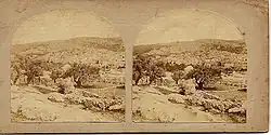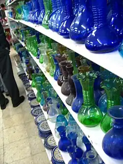 A report from the consul of the French Consulate in Jerusalem in 1886 suggests that glass-making remained an important source of income for Hebron, with four factories earning 60,000 francs yearly.[128] While the economy of other cities in Palestine was based on solely on trade, the economy of Hebron was more diverse, including agriculture and livestock herding, along with glassware manufacturing and processing of hides. This was because the most fertile lands were situated within the city limits.[129] Even so, Hebron had an image of being unproductive and an "asylum for the poor and the spiritual".[130] While the wealthy merchants of Nablus built fine mansions, housing in Hebron consisted of semi-peasant dwellings.[129]