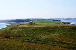 As nearly all of Denmark, Helgenæs was formed at the end of the last ice age some 12,000 years ago. The narrowest part of the peninsula, Dragsmur, is 240 meters wide. It is said that the Vikings, when sailing in and out of the Bay of Aarhus transported their longships across the narrow section,[3] perhaps by rolling them on tree trunks. By doing this, they were able to save approximately 4 nautical miles (7 km) of travel.