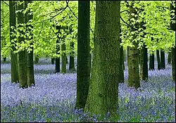 Much of the west – and much more in the east – have richly diverse countryside.[16] These range from beech woods of the Chilterns, clayland buffer zone countryside of Braughing and the Hadhams across to ancient hornbeam coppices west of the upper Lea valley.[16] The county has sweeping panoramas of chalklands near Royston, Baldock, Hexton and Tring.[16]