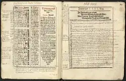 The Palgrave Handbook of Climate History provides a comprehensive overview of the methods and results of historical climatology in a global context.[1] According to this, information in historical documents should not be taken at face value without verification. The most credible are reports by contemporaries that were recorded shortly after the event and dated documents from institutions. Transcripts of sources are prone to error. Furthermore, attention must be paid to correct dating. Globally, there have been two major systems of calendars: solar calendars based (approximately) on the revolution of the Earth around the sun, and lunar calendars based on the orbit of the moon. The former have historically been used in Europe (and its colonies), India, and Iran, while lunar calendars were historically used in the Islamic world and imperial China.[3] It is also important to distinguish between Julian (“old style”) (Julian Calendar) and Gregorian (“new style”) dates (Gregorian Calendar). When "Saints'" days are used for dating, it must be determined whether the dates refer to the new or to the old calendar. Any corrections must be made accordingly. The presented almanac for the year 1600 displays the two dating styles including the Saints days side by side. The “old” Julian calendar to the right celebrates “Chris" [i.e. Christmas] 10 days later than the 'new” Gregorian calendar to the left, namely on 4 January. If Saints Days are used for dating attention must be paid to the calendar used, as the reproduction of the almanac illustrated shows