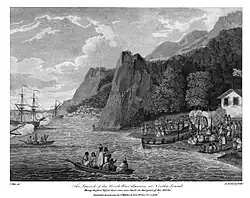 In 1788, some 120 Chinese contract labourers arrived at Nootka Sound, Vancouver Island.[1][2]: 312 British fur trader John Meares recruited an initial group of 50 sailors and artisans from Canton (Guangzhou) and Macao, China, hoping to build a trading post and encourage trade in sea otter pelts between Nootka Sound and Canton.[1] At Nootka Sound the Chinese workers built a dockyard, a fort, and a sailing ship named the North West America. Regarding this journey and the future prospects of Chinese settlement in colonial North America, Meares wrote: