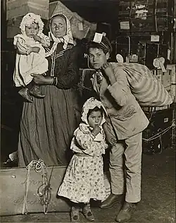 More than 23 million people immigrated to the United States from 1880 to 1930 alone. Although many of these immigrants settled in urban centers, not all of them stayed in the U.S. permanently. In some groups, like the Southern Italian contadini, it was common to return to their place of origin, which about half of them did. Others, like 90% of Eastern European Jews who immigrated to the United States, stayed permanently.[44] Within the first decade of the 20th century, 14.7 percent of Americans were born in a different country, 22 percent of the population settling in urban areas.[45]