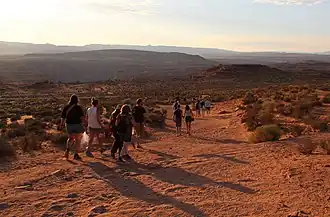 It is accessible via hiking a 1.5-mile (2.4 km) round trip from a parking area just off U.S. Route 89 within southwestern Page.[1] The land south of the Bend's parking area, trail, and overlook are on the Navajo Nation territory.[4]