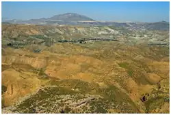The Hoya of Guadix (Spanish: Hoya de Guadix) is a natural plain in the northern part of the province of Granada, Andalusia, Spain. It covers some 500 square kilometres (190 sq mi), and is formed by the basins of the rivers Fardes and Guadix.[1] It is surrounded by the heights of the Sierra Nevada to the south, the Sierra de Baza to the east, the Sierra Mágina to the north and the Sierra Harana to the west. It is separated by the Cerro Jabalcón from the Hoya of Baza which, like the Hoya of Guadix, is one of the series of valleys forming the Surco Intrabético.