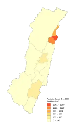 Hualien County is divided into one city, two urban townships, seven rural townships, and three mountain indigenous townships. Some towns have Japanese names because these towns were named by Japanese during the Japanese ruling period from 1895 to 1945. Hualien City is the county seat and houses the Hualien County Government and Hualien County Council.[5]