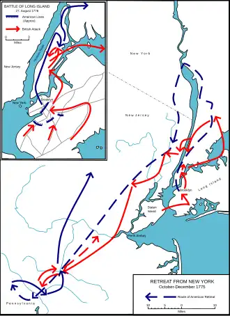 The Hudson River was a key river during the Revolutionary War. The Hudson's connection to the Mohawk River allowed travelers to get to the Great Lakes and the Mississippi River eventually. In addition, the river's close proximity to Lake George and Lake Champlain would allow the British navy to control the water route from Montreal to New York City.[10] In doing so, the British, under General John Burgoyne's strategy, would be able to cut off the patriot hub of New England (which is on the eastern side of the Hudson River) and focus on rallying the support of loyalists in the South and Mid-Atlantic regions. The British knew that total occupation of the colonies would be unfeasible, which is why this strategy was chosen.[11] As a result of the strategy, numerous battles were fought along the river, including several in the Hudson Valley.[12]
