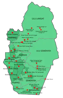 - Kajang Municipal Council (Most parts of the district except Mukim Ampang)