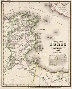 Ifriqiya (Arabic: إفريقية, lit. 'Africa' Ifrīqya), also known as al-Maghrib al-Adna (Arabic: المغرب الأدنى), was a medieval historical region comprising today's Tunisia, eastern Algeria, and Tripolitania (roughly western Libya).[1][2][3] It included all of what had previously been the Byzantine province of Africa Proconsularis and extended beyond it,[4] but did not include the Mauretanias.[5]