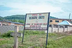 The Ikogosi Warm Springs is a tourist attraction located at Ikogosi, a town in Ekiti State, southwestern Nigeria.[1] Flowing abreast the warm spring is another cold spring which meets the warm spring at a confluence, each maintaining its thermal properties.[2] These attributes make the spring a tourist attraction in Nigeria.[3] Research suggested that the warm spring has a temperature of about 70°C at the source and 37°C at the confluence.[4]