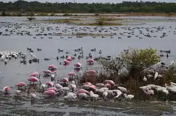 The lagoon contains 35 species listed as threatened or endangered — more than any other estuary in North America.[2][17] The lagoon has about 2,500 types of animals in it. It serves as a spawning and nursery ground for different species of oceanic and lagoon fish and shellfish. The lagoon also has one of the most diverse bird populations anywhere in America.