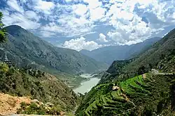 93% of the water of the Indus Basin is used for irrigation of agricultural land.[9] Many of the rivers of the Indus River system are dammed to create large reservoirs of water: in India the Satluj river is dammed at Bhakra creating the Gobind Sagar reservoir, the Beas at Pong creating the Maharana Pratap Sagar reservoir and the Ravi at Thein creating the Ranjit Sagar reservoir; while in Pakistan the Jhelum river is dammed at Mangla and the Indus is dammed at Tarbela and Chashma creating the Mangla, Tarbela and Chashma reservoirs respectively. The water from these reservoirs as well as from various barrages are diverted to irrigate 26 million hectares (mha) of agricultural land, 16 mha in Pakistan and 10 mha in India.[10]