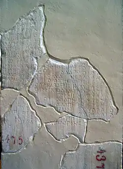 The Ionic section of the Athenian tribute list for 454/3 BC.