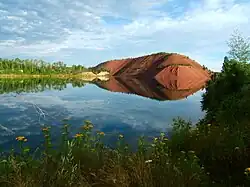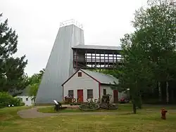 The Iron Range is collectively or individually a number of elongated iron-ore mining districts around Lake Superior in the United States and Canada. Much of the ore-bearing region lies alongside the range of granite hills formed by the Giants Range batholith.[1] These cherty iron ore deposits are Precambrian in the Vermilion Range and middle Precambrian in the Mesabi and Cuyuna ranges, all in Minnesota. The Gogebic Range in Wisconsin and the Marquette Iron Range and Menominee Range in Michigan have similar characteristics and are of similar age. Natural ores and concentrates were produced from 1848 until the mid-1950s, when taconites and jaspers were concentrated and pelletized, and started to become the major source of iron production.[2]
